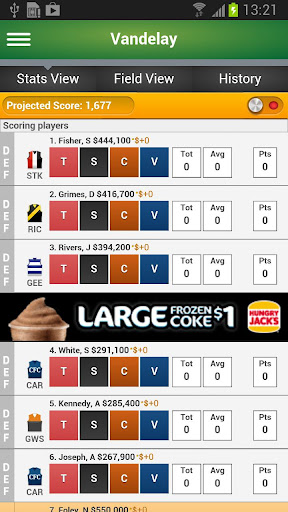 Features of AFL SuperCoach Season 2013 1.0.1 for Android